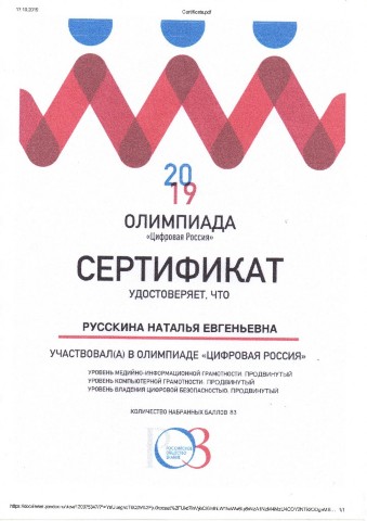 - Всероссийская Олимпиада «Цифровая Россия», награждены сертификатами: