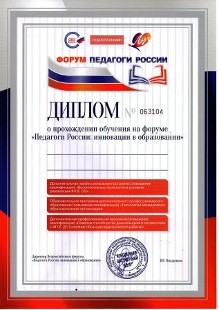 Региональный этап Всероссийского форума «Педагоги России: инновации в образовании», награждены дипломами о прохождении обучения на форуме :