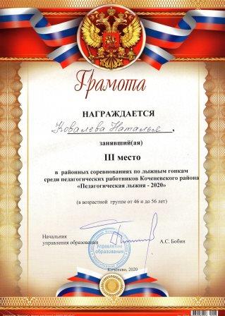 - грамотами за 2 место педагоги групп дошкольного образования в составе команды МКОУ Коченевская СОШ №2: Л.В.Иванова, Н.П. Ковалева, Н.И. Зайцева, Н. Е. Русскина (февраль 2020 год);