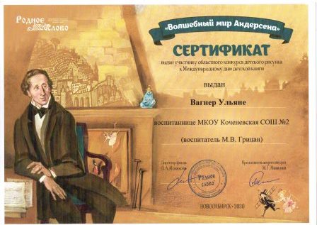 - сертификатами за участие воспитанница подготовительной группы №2 Рыль Ангелина (6 лет) и воспитатель Олеся Ивановна Губанова;