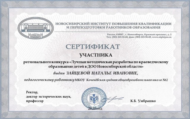 Региональный конкурс «Лучшая методическая разработка по краеведческому образованию детей в ДОО Новосибирский области «Мой край родной», награждены: