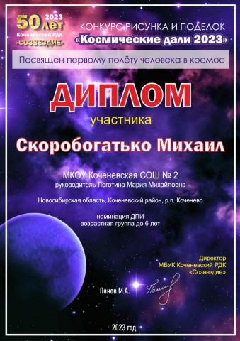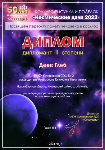Районный конкурс рисунков и поделок « Космические дали-2023», награждены: