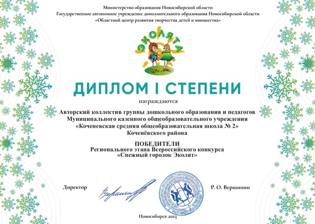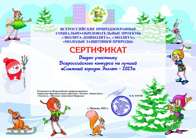Всероссийский конкурс «Снежный городок Эколят - 2023», награждены: